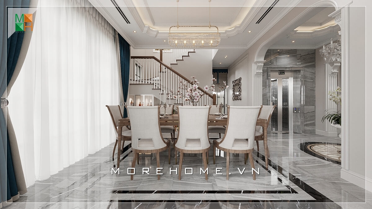 Thiết kế nội thất cho phòng ăn biệt thự phong cách tân cổ điển sang trọng