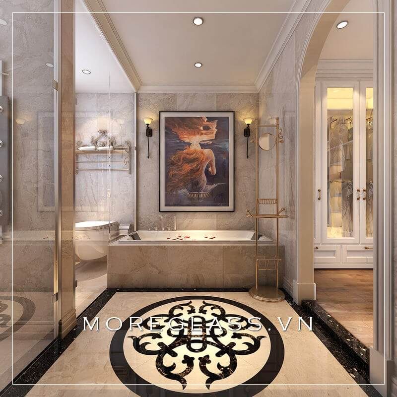 Mẫu đá granite ốp bồn tắm màu vàng kim sang trọng là sự lựa chọn hoàn hảo để tạo nên không gian phòng tắm thật đẹp cho gia đình bạn.