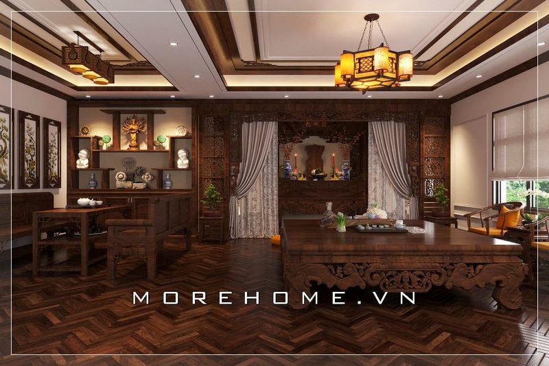Nội thất phòng thờ gỗ tự nhiên được thiết kế sang trọng để làm nên sự tôn trọng ở chỗ linh thiêng.